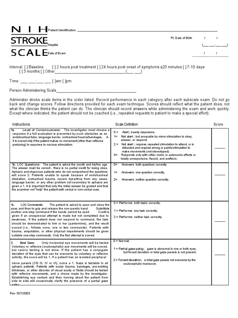 • record performance in each category after. The national institutes of health stroke scale (nihss) is a standardized tool for.