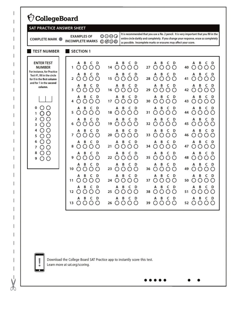 Printable Sat Answer Sheet - Web for instance, for practice test #1, fill in the circle for 0 in the first column and for 1 in the second column. Web get your downloadable sat practice test with 154 sat practice questions here, plus the expert info you need to succeed on the sat! The questions in this section address a number of important reading. Learn our strategies for how to improve the most. Web click here to find every free printable sat test with answers available.